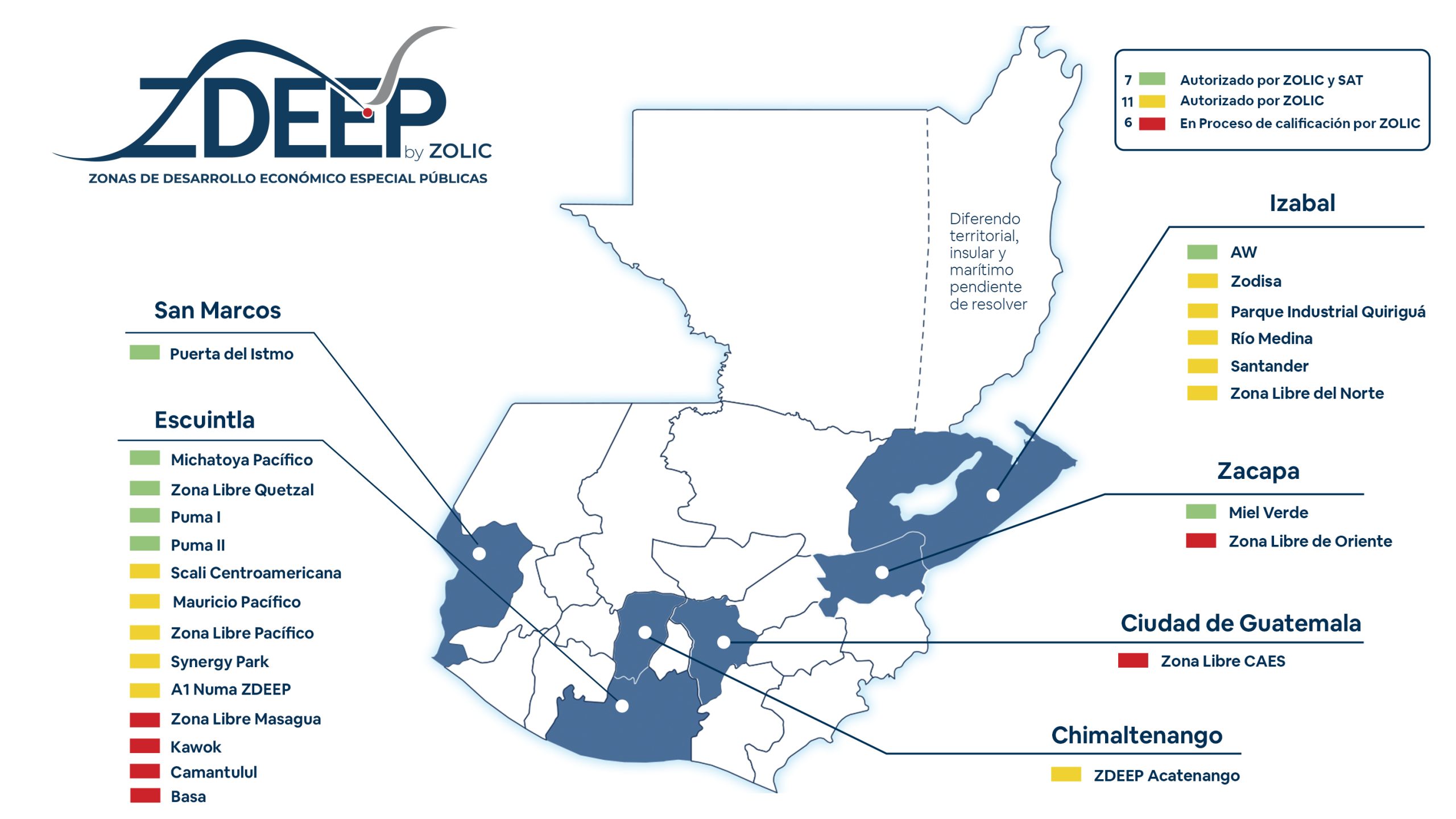 Una Zona de Desarrollo Económico Especial Público (ZDEEP) en Guatemala, es un área geográficamente definida dentro del territorio nacional, extra aduanal, destinada al desarrollo de bienes y servicios industriales o actividades comerciales, con tarifas especiales, régimen aduanero temporal y comercio exterior, autorizadas por ZOLIC. Decreto 30-2008, Reforma de la Ley 22-73 del Congreso de la República de Guatemala.